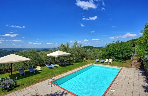 Surrounded by olive groves, guests can enjoy peaceful walks in nature. The villa is also conveniently located near Florence, Siena, and San Gimignano, perfect for exploring Italy’s art cities. For a more relaxing stay, unwind in the garden or take a refreshing swim in the pool.