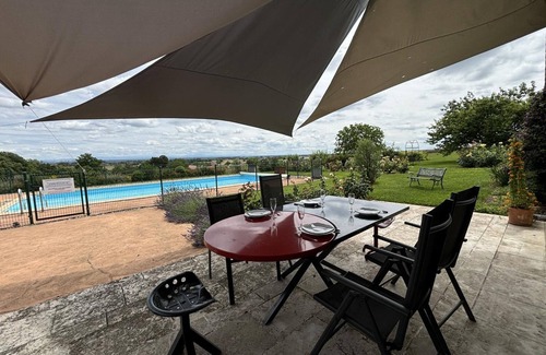 Explore the oldest vineyard in France and drop off your bags at this gîte located a few meters from the owners' house. From summer until frost, admire the rose gardens. More than 500 species surround you and overlook the Puy de Dôme, the Bourbonnaise mountains, and Vichy, a UNESCO World Heritage Site. It's said to offer "a breathtaking view." Visit Saint-Pourcain-sur-Sioule, 4 km away, and its weekly market on Saturday mornings. Taste local products, and discover Paléopolis, 25 km away, the dinosaur hill. Back at the gîte, relax in the owners' shared swimming pool, 5 x 12 m and with a depth ranging from 1.25 to 2.50 m. There are dedicated hours: 10:30 [hidden] to 1 [hidden] and 4 [hidden] to 6 [hidden], open from May to September, depending on weather conditions.
