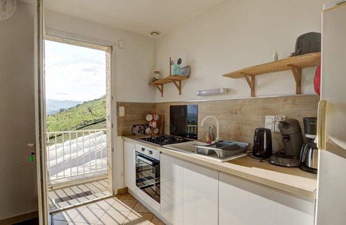 The cottage is located in a farm building owned by an arborist (of which Thierry represents the 3rd generation). It has independent access, parking, and private land. The large 45 m² living room includes a lounge, open kitchen, two bedrooms, a separate toilet, and a bathroom. All windows face west, overlooking the setting sun, with no vis-à-vis. Electric heating is included in the rental. Outside, there is a dining area, a bowling green, and children's games. (For companies, the deposit is €800). You will love living in the countryside, overlooking the greenhouses and orchards, with superb views of the surrounding countryside, the village, and the Pilat Natural Park. The environment is ideal for mountain biking, walking, and hiking. Shops in the village are easily accessible on foot, and the village of St-Romain is 10 km from the Lyon/St-Etienne motorway, making it ideally located, whether you're staying for vacation or business. In 2023, the year of the opening, your outdoor space will be shared with the other gîte, with a table, sun loungers, parasol, and barbecue for each tenant. You also have access to a large meadow to take full advantage of the south-facing location, with maximum sunshine. The St-Martin la Plaine Zoo is 3 km from the house.