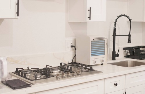 ・Fully equipped features: Stove, Refrigerator, Microwave, Toaster oven, Toaster, Drip coffee machine, Brita water, Rice cooker, Hot water kettle, utensils, plates and bowls, pots and pans, wine glasses and coffee mugs.