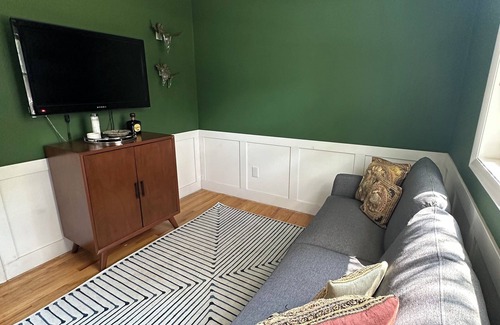 Both bedrooms feature comfortable beds with fresh linens, and the home includes everything you need for an easy stay—Wi-Fi, smart TV, washer/dryer, and heating/AC.
