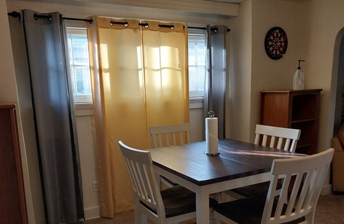 This cozy 3 bedroom property is perfect for guests who value a quiet suburb living. All 3 bedrooms are upstairs, The property has a large living space, a fully equipped kitchen and dining area with a farmhouse style dining set for 4. The basement has a full bathroom, washer/dryer, and a man cave. Roku TV and office area are on site. The newly refurbished property is at a location with easy access to choices of restaurants,neighborhood bars, and grocery shopping. Dishes, towels,WIFI provided. NOTE: Loud parties and drug use are strictly prohibited in this quiet suburban property .