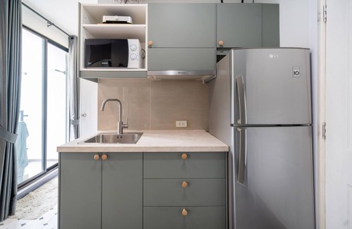 Inside, the apartment is decorated in a modern style and is fully equipped for a perfect holiday. The open-plan design features a comfortable seating area with a Smart TV and a kitchen. Stay connected with high-speed Wi-Fi, perfect for sharing your Phuket adventures.