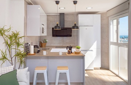 Upon entering, you will be greeted by a spacious living room that integrates with a modern and fully equipped kitchen with all the necessary utensils for its use, all in an open concept design that maximizes space and natural light. The small terrace becomes the ideal place to enjoy under the sky of Malaga.