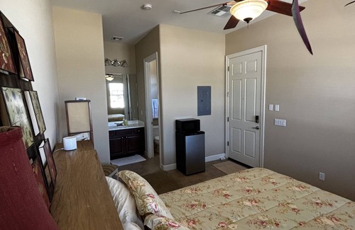 Beautiful desert casita with queen size bed, large TV, and private bathroom located in West Phoenix (Goodyear/Buckeye) area. Perfect for business travel, golf trip, or any kind of vacation. Wonderful golf area along with short distance to all outdoor activities including close proximity to the White Tank Mountains and South Mountain. Located inside a gated community.