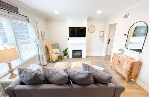 This cozy one bedroom apartment is the perfect place to unwind & relax. Located in the heart of downtown Leonardtown, the Retreat at Fenwick is steps away from many delicious dining opportunities, unique and fun shopping at local boutiques, and fun entertainment experiences. It includes free wifi, a full kitchen & complimentary coffee bar, a charming eat-in dining space, full size pull out sofa bed, a cozy electric fireplace, a sleek workspace, and whimsical bunkbeds that are great for kids!