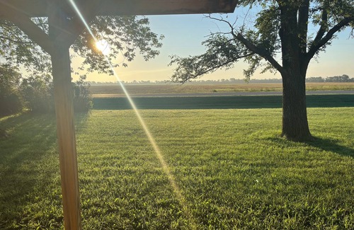 Welcome to our peaceful 2-bedroom farmhouse cottage, nestled on 5 quiet acres just north of Halstead, Kansas. This cozy retreat offers the perfect blend of rural charm and modern comfort—complete with big Kansas skies, views of our 1920s barn and silo, and a welcoming, homey atmosphere.