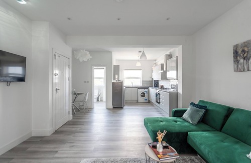 This charming 2-bedroom property features a blend of modern amenities and cozy comforts. The spacious living room is filled with natural light, creating a warm and welcoming atmosphere. Unwind on the plush sofa while streaming your favorite shows on the smart TV or catch up on work with our high-speed Wi-Fi.