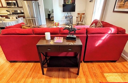 Linens/towels-bedding and bath towels are provided for your convenience. Smart TV-just login to your own streaming account and enjoy! Stairs-please be mindful. There are stairs to climb to enter the home. Keys-the home has keyless entry, and you’ll receive a code shortly before arrival. Parking-you will receive a message with designated parking instructions. Starter items-we provide some basic items to help with your first night like toilet paper, dish soap, paper towels, trash bags, laundry detergent, please plan to pack/buy any additional disposable or specialty kitchen, bathroom, and laundry items required for the length of your stay. Trip insurance-we encourage all guests to purchase trip insurance to protect themselves against any seen or unforeseen events that would prevent or disrupt their trip, including personal emergencies, inclement weather, etc…. Rate discounts-we adjust our prices to reflect the current market, our location, and the amenities we offer. We do not accept discount request. Guest are welcome to explore the conservation park surrounding our property. You’re welcome to visit the horses and chickens at your own risk, but please do not enter the fields, stalls, or chicken enclosure. Please do not feed any animals on the property unless you have permission from your host. Children must be supervised at all time. Other things to note: