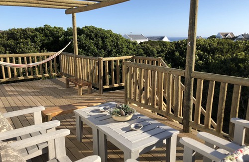 The furniture is a mix of old and new, with an emphasis on wooden elements. The decor has an earthy, beachy feel - it is supposed to be a relaxed space after all! The cottage is right next to a green belt, making it very private. It is ideal for weekend breakaways and family holidays by the sea. Big Entertainment and Braai area at the back of the house All cooking facilities including an oven and stove as well as fridge freezer is provided.