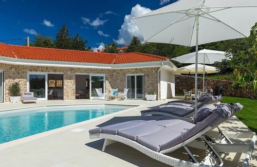 The villa offers free WiFi and is fully air-conditioned.25 km long Vinodol (wine valley) runs parallel to the coast, a stretch of land almost untouched by the tourist streams that fight their way south along the Magistrala on the coast. This valley is separated from the sea by a two kilometer wide and 300 m high mountain range. It was first mentioned in a chronicle from the 12th century under the name Vallis Vinearia. However, it is known that a road already ran along this valley in Roman times. Situated on a hillside, this vacation property offers you a fantastic view over the Vinodol valley and plenty of privacy for guests, yet it is only a 15-minute drive from the tourist stronghold of Crikvenica, where you will find numerous restaurants, beautiful beaches and all kinds of activities for an active vacation.