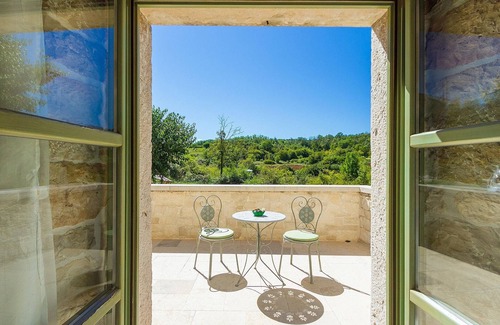 Unmissable idyllic, wooded hills dotted with olive groves, picturesque villages and authentic farmhouses are visible from Villa Zvonar, set on the verdant hillside in the heart of central Istria. A traditional stone house has been lovingly and carefully renovated to retain its original charm and tranquillity, to which modern facilities have been added, including beautifully appointed en-suite bathrooms, Wi-Fi and underfloor heating. The first floor offers a spacious open plan living and dining room with a fully equipped kitchen so you can venture out to cook some of the regional recipes. Wood-beamed ceilings, natural stone walls and a cozy fireplace provide a pleasantly inviting rustic atmosphere, while the large panoramic windows let in plenty of natural light and emphasize the endless views. The three tastefully decorated bedrooms are on the upper floor, two of which have private terraces that serve as ideal quiet corners. The same care and attention has been given to the outdoor area, where you will find an eco-garden. The extensive lawn garden is adorned with a variety of flowers, as well as lavender and rosemary bushes, and surrounds the inviting pool. Real tranquillity and the unique beauty of this magical region can truly be enjoyed here. The outdoor jacuzzi is at your disposal.