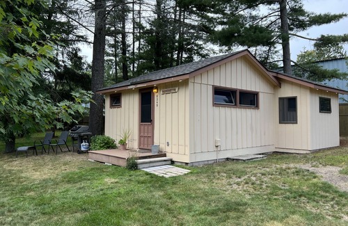 Charming one bedroom cottage is cozy and private yet just steps to our sugar sand beach and recreational activities. Rental includes access to all Glen Craft amenities, including the beach, paddle boat, fire pit, sauna, etc. Features include living room with vaulted ceiling and fan, new TV, full size pull out couch, electric wall heater, dining table, kitchenette with refrigerator/freezer, range and microwave, airy bedroom with vaulted ceiling, queen bed, ceiling fan. and AC and. Small bathroom with a shower Accommodates up to 3 guests maximum. Great opportunity to enjoy all Big Glen has to offer without the expense of a lakefront rental. Beach usage with chaise lounges, umbrella tables, swim raft and small water crafts. Set back privacy, but no lake view.