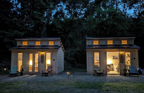 Just steps from the cabin, a sleek, separate bathhouse offers a brand-new shower, toilet, and washer/dryer setup—so you’ll feel as refreshed as the morning air. Outside, you’ll find everything you need for long summer evenings: a fire pit for marshmallow toasting, a grill for lakeside feasts, and plenty of comfortable seating for cocktail sipping under the stars.