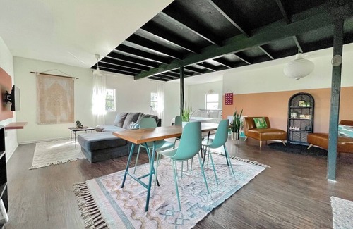 This guest studio is a recently renovated space with tons of natural light and cute decor. It’s a great getaway space for someone looking for a peaceful, rural retreat. This isn’t a chic city loft, it’s a private apartment above our detached garage. The property consists of almost 8 acres and our home + guest studio is surrounded by beautiful trees, nature and wildlife. Guests have access to our rugged hiking trails, too. 25 mins to Austin, 10 mins to COTA.