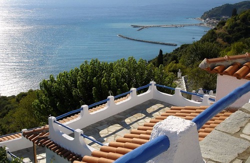 The private Residence SECRET SPORADES is located on the seaside of the old village of KLIMA from which it is separated by two access gates. Each house within joys a wide view on the island of Skiathos, the smaller islands around the island of Evia, Mount Pelion on the mainland, the marina and the town of Glossa which, when illuminated in the evening, offering a panoramic breathtaking with exceptional sunsets. The old village of Klima has just over a hundred houses that have been restored in recent years by an international community. Only the main street allows the circulation of the car to the central square of the village, where they stop the car right time to unload luggage or heavy objects and then return to the municipal parking nearby. It 'also why this place is being preferred by families who can vacate their kids as there is no car traffic.