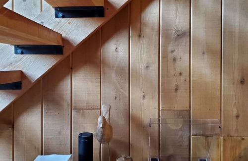 Admire sublime views from this double-height A-frame. Hike, bike, sled, or just frolic right in our own backyard. 5-10 mins. from the lake or ski resorts. With a deluxe cinema loft, play a board game or enjoy our Sonos sound system. You can surf the web with our smart tv or take in one of the many curated books that we provide. Downstairs you can enjoy a fire, play guitar and ukelele or simply choose a record from our growing collection. You have all that you need.
