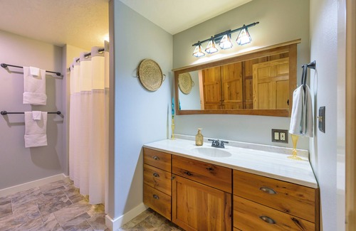 Perros Locos is waiting for you at this fabulous 1 or 2 bedroom. Price displayed is with one room for up to two people. 2nd room is priced at $75.00/person up to two. Guest quarters are located in the daylight basement and include a spacious living room with smart TV, and powered recliners, a room with a queen bed, and a private bathroom stocked with all the essentials. Enjoy the convenience of WiFi and a fitness room for your private use during your stay. On the main level you’ll find access to common area amenities like dining, formal sitting around the pellet stove, back patio seating, fire pit, and three person hot tub. The charming atmosphere of this property will make guests feel right at home. We're happy to assist with any questions you might have.