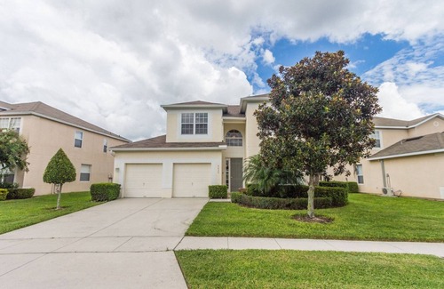 Windsor Hills Resort Vacation Home - includes resort clubhouse amenity access Our 5-bedroom 5-bathroom private pool spa vacation home is a great option for families wanting a home base to enjoy the best of all that Central Florida has to offer Windsor Hills Resort Private Pool Home Sleeps up to 10 5 bedrooms 5 bathrooms Windsor Hills Resort Gated Community 4 miles to Disney World property Fully equipped Kitchen with dining for 6 at the dining room table Additional seating for 4 at the breakfast table Private pool with spa faces North in screened-in lanai Outdoor Dining Seats 4 Sun Loungers 7-minute walk to the ClubhouseBEDROOMS 1st Floor Downstairs - Bedroom 1 One King Bedroom Attached Bathroom 29 TV- Bedroom 2 One Queen Bedroom Attached Bathroom 32 TV- Bedroom 3 Two Twin Bedroom Shared Bathroom 32 TVBEDROOMS 2nd Floor Upstairs - Bedroom 4 One Queen Bedroom Attached Bathroom 32 Roku TV- Bedroom 5 Two Twin Bedroom 32 Roku TVPool Spa Charges and Information There is an additional optional charge of 30 per day plus tax to heat the pool spa The spa will not heat up without the pool heater being turned on Please note that our pools are serviced on a weekly basis Resort Parking Rules The resort allows maximum 3 cars Do not block the sidewalk or park on the street or the resort will fine you3rd car needs to be parked parallel to the driveway to not block the sidewalkWindsor Hills Resort Amenity Access Included with Rental Resort-style zero-entry pool 2 Water Slides Interactive Splash Pad Playgrounds Fitness center Sand volleyball Basketball and Tennis courts Arcade Clubhouse Access Via Wristbands Wristbands are obtained at the clubhouse upon arrival to the resort Must present voucher to prove residence As a guest to use the Clubhouse Facilities you are entitled to a certain maximum number of wristbands based on the number of bedrooms in the unit you are renting The number of wristbands for this unit are as follows 5 Bedroom Unit - Maximum of 12 wristbands No wristbands will be provided in excess of this amount All individuals must wear their wristbands on their wrist at all times while using the clubhouse amenities Guests of Registered Guests may use the clubhouse amenities only while accompanied by the Registered Guest Distances to Shopping Attractions Home is located on Daulby Street Walt Disney World 4 miles Universal Studios 16 miles SeaWorld 14 miles Orlando Airport 25 miles Atlantic Coast Beaches 74 miles Gulf Coast Beaches 89 miles Walmart Supercenter 1 mile Dining 1 mileWhy Choose this Rental - Professionally managed to serve all your needs- Management company has over 26 years of experience hosting well over 200 000 families- Go straight to your rental with online email check-in- 24 7 on-call maintenance- No Resort Fees- Free On-Site Parking- Smoke-free for your comfort- Towels and linens are provided- Complimentary WiFi- Additional Rental items Available e g 3 4 burner BBQs cribs pack-n-plays strollers high chairs etc Starter welcome packet supplies - 2 rolls toilet paper per bathroom- 2 round hotel-size bar soap per bathroom- 1 hotel-size shampoo conditioner per full bathroom- 1 roll paper towel- 1 packet dishwasher detergent- 2 trash bags size-13-gallon- 1 small box laundry detergent enough for one load - Garbage can liners in each bedroom bathroom small garbage cans Any supplies beyond this are up to the guest to replenish we do not restock these items No salt pepper or cleaning supplies are stocked due to safety issues This is an industry-standard practice FOR GUESTS WHO BOOK 30 NIGHTS OR LONGER STAYS this does not apply if you are staying less than 30 nights We will collect a 1 500 deposit Balance is due 60 days prior to arrivalIf canceled 90 days or more before arrival we keep with us 250 00 1 250 00 will be refunded If canceled between 61 and 89 days prior to arrival we keep with us the 1 500 00 deposit No cancellation or modification 60 days or less prior to arrival