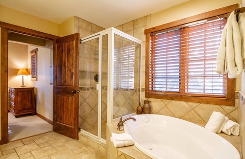 On the first floor of the cottage, you will find a fully stocked kitchen. The living room offers plenty of room for entertaining, warming up by the fire or winding down after a long day on the mountain. The Master Bedroom features a large jacuzzi tub as well as a shower, the washer and dryer are also located here.