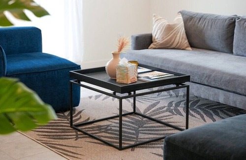 - Full-size washing machine and dryer with complimentary-use laundry detergent and fabric softener