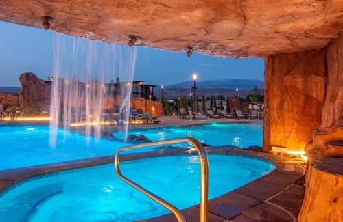 * Resort-style pools with red rock cliffs and waterfalls (heated to only 80 degrees or so in winter months, hours 8 am-12 am)