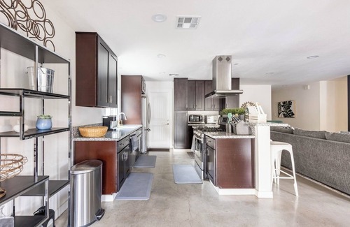 A clean-lined, elegant, understated getaway with 4 bedrooms (3 California King beds, 1 Queen bed and 1 sofa bed in the Living Room) with 2 bathrooms close to everything you could ever want in the desert. Private heated pool and spa, mountain adjacent with great views and plenty of places to lounge.