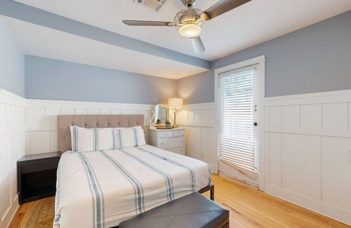 Inside, the plush, bohemian furnishings and modern appliances ensure a comfortable stay. When you aren't testing out the area's vibrant culinary scene, utilize the full kitchen's stainless steel appliances and granite countertops. Down the hall, discover four equally comfortable bedrooms, a study space with extra sleeping arrangements, and a separate laundry area. A Pack-N-Play and central air-conditioning tie together the list of interior amenities.