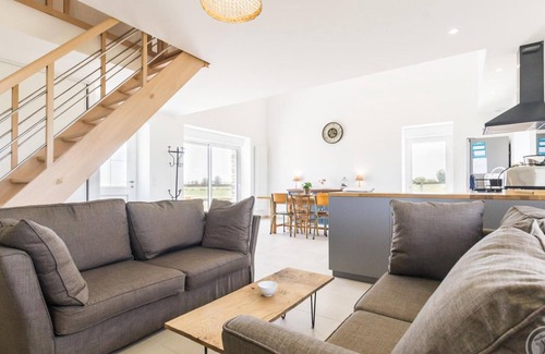Detached house. Kitchen (filter coffee maker, oven, dishwasher, ceramic hob, fridge with freezer, microwave) open to living room (TV). Bedroom 1 (160x200 bed). Bathroom with washing machine. Wc. Upstairs, bedroom 2: 2 90x190 beds (no exterior window but small window overlooking the corridor and glass roof overlooking the living room), bedroom 3 (160x200 bed) with integrated shower room and view of Mont St-Michel. Wc. Baby equipment on request. Sheets provided. Beds made on arrival. Cleaning fee included. Electric heating and water charges included. Terrace. Garden furniture. Picnic table. Barbecue. Parking. Private enclosed garden. For arrivals after 6 [hidden], a key box is available. A second gîte is available on site. View of Mont St-Michel from the ground floor depending on the season and the cultivation in the neighboring field. Taking the coastal road along the majestic bay of Mont St-Michel, you'll be delighted to discover the small hamlet of Les Buternes, overlooking this enchanting setting. Tiphaine and Josselin have worked tirelessly to completely renovate this beloved family heritage. Two separate gîtes (sleeping 6) have been created, providing a beautiful setting for families wishing to enjoy Mont St-Michel in complete tranquility. Perfectly equipped and featuring a spacious living room with high ceilings, the "Chat Perché" enjoys a beautiful southern exposure. From the gîte, you can walk to the GR223 hiking trail and explore the bay and the famous monument. A lovely view of the wonder can be enjoyed from the ground floor, depending on the season and the crops grown in the neighboring field.