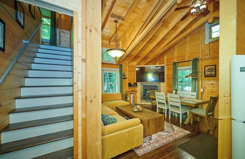 Escape to our charming, artistically designed retreat, where comfort and creativity come together. This beautifully crafted vacation rental features an open floor plan that invites you to relax and connect with loved ones. The gas fireplace creates a warm and inviting ambiance, perfect for cozy evenings. The well-appointed kitchen offers everything you need to prepare delicious meals, whether whipping up a homemade meal or enjoying a quiet breakfast. On the main level, you'll find two comfortable bedrooms and a full bath, thoughtfully designed for convenience. Upstairs, a spacious third bedroom provides a private sanctuary for restful nights.
