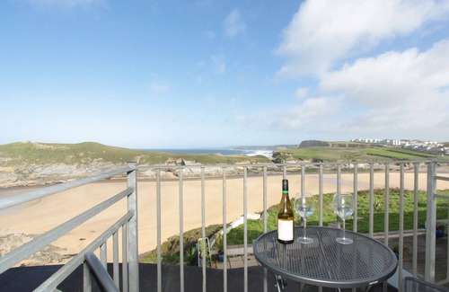 Kitchen/dining room: Breakfast Bar, Electric Oven, Gas Hob, Combi Microwave/Oven/Grill, American Fridge Freezer, Dishwasher. Heating, gas, electricity, bed linen, towels and Wi-Fi included. Highchair. Balconies with outdoor furniture. 17-acre grounds with direct beach access (shared with other properties on-site). Allocated parking for 1 car. No smoking.. 7 Glendorgal Sands is a reverse level end terrace apartment spread over three floors. The property makes the most of its elevated position with stunning views across Porth Beach and out to sea.