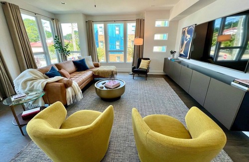 Exceptional 1 bed 1 bath guest suite in a stunning Uptown Charlotte townhouse! The suite includes a private bedroom and full bathroom on the first floor as well as access to shared common spaces including a beautifully decorated, fully stocked kitchen, open living/dining spaces, and a cozy porch to enjoy your morning coffee. You'll love the luxurious finishes throughout the space, and the location is perfect for exploring Charlotte as it's close to bars, restaurants, and the stadium.