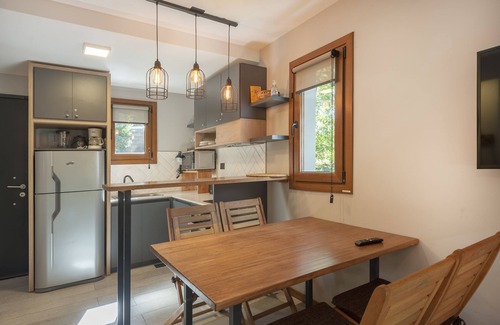 Al ingresar nos encontramos una amplia sala de estar con TV-LED 42" Smart de última generación, comedor en conjunto, donde podremos apreciar el living y el comedor, con una cocina completamente equipada con utensilios de cocina y electrodomésticos varios, heladera, horno, pava ,etc..