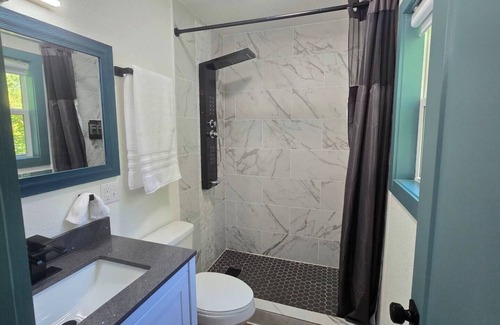 Escape to this beautiful Eureka Springs LAKEVIEW retreat! watch stunning sunsets from the spacious deck or soak in the beauty of the Ozarks in your private HOT TUB. Featuring a king master, a queen bunk room, full kitchen, and a queen bed pull out in the living room. The entire duplex is also available to rent. Short walk to the marina and ample lake access. Relax, recharge, and make unforgettable memories at this private getaway. Plenty of parking. BRING YOUR BOAT and remember to stargaze