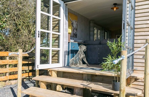 Light and colour fill the sociable, open plan living space, which opens onto steps down to the garden. Bold canvasses hang on the walls; there's plenty of comfortable seating, piles of DVDs, a large TV and a great fire effect wood stove. Leading off is a kitchen - fresh, spotless and well-equipped. With pretty patterned curtains and restful views, the dining space is a delicious place for lingering breakfasts.
