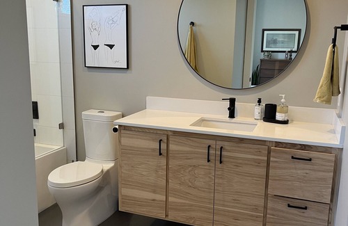 Experience Austin from your own private getaway in the heart of the city's hip and eclectic East Side. A private entrance leads you to a second story loft filled with lots of natural light tucked away among the Texas live oaks. The location is unbeatable, with classic East Austin venues like Sam's BBQ and Bar King Bee just one block away, downtown only a mile from your doorstep. Come see the best Austin has to offer from a relaxing setting with superior modern style.