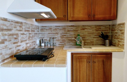 Layout: Ground floor: (open kitchen(cooker(2 ring stoves, induction), fridge-freezer), Living/diningroom(double sofa bed, TV(satellite)), bedroom(double bed), Bedroom with bathroom(double bed, TV(satellite), shower, washbasin, toilet, bidet), bathroom(shower, washbasin, toilet, bidet), heating)