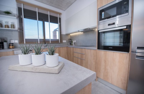 A new building maisonette with three rooms and three toilets. There is a private pool with comfortable sun loungers. All the balconies are seaview and the distance from the beach is only three minutes