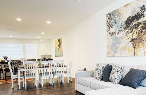 Welcome to the Enchanted Oasis, a 4-bed3.5-bath retreat minutes away from DISNEYLAND CALIFORNIA and Knotts Berry Farm. Conveniently located just a 2-minute walk from Costco. Enjoy hassle-free parking with 2 indoor garage spaces and explore LAX, Newport Beach, and Huntington Beach, all within 30 minutes. Inside, you'll find a beautifully furnished 4-bedroom, 3.5-bathroom retreat designed for your comfort and convenience. Book your stay today for an unforgettable Southern California escape!