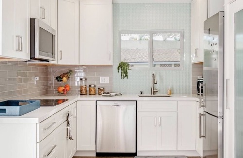 - Full kitchen with all full-size appliances (dishwasher, microwave, full oven, toaster oven, blender, dishes etc..) custom cabinets and gorgeous granite countertops. If you like to cook, you'll love this kitchen! The guest house has its own kitchen with induction cooktop, toaster oven, refrigerator, and more!