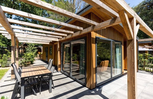 Get to know our type of accommodation the Heide Lodge Eco with a pergola, Luxury, spacious, sustainably built, stylish, completely gas-free and with a hottub in the garden! Suitable for 4 people. Below you will find property specific information under 'Details'.