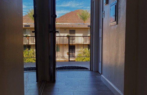 Mid-Century Modern Condo with a Balcony overlooking the Acadia sunset. Located in the only true condo complex in the Acardia neighborhood. View of Camelback Mountain from the front door.