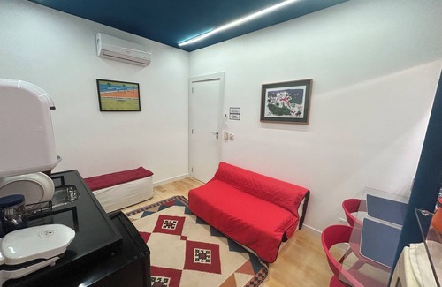 In the living room, relaxing, enjoying that delicious food (which has already arrived and can be reheated in the microwave) sitting around the illuminated transparent glass counter and accompanied by your favorite soundtrack via the Bluetooth sound system, it is very welcoming. Pure cold water is free and comes from the filter next to the room's sink. Below, the minibar stores fruit, dairy products, small purchases and cold drinks. There is a toaster, plates, cutlery and thermos for your morning coffee. The sofa bed can accommodate an additional adult.