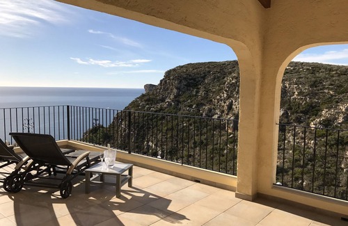 Casa Windlenook is a beautiful 5 Star luxury villa with front-line sea and mountain views and private heated pool, located on the exclusive Cumbre del Sol, close to Moraira and Javea. The spectacular elevated position of the house means you'll enjoy the breath-taking sea views (so close you can hear it!) and dramatic mountain views every where you turn. Designed personally by the owners Eleanor & Mike to a very high specification, great care and attention has been paid to every little detail in this immaculate home from home - so all you need to do is arrive, relax and unwind!