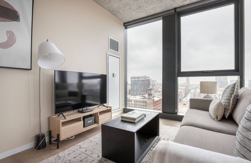 Show up and start living from day one in Chicago with this sophisticated two bedroom Blueground apartment. You’ll love coming home to this thoughtfully furnished, beautifully designed, and fully equipped Fulton Market District home with stunning views over the city. (ID #CHI1067)