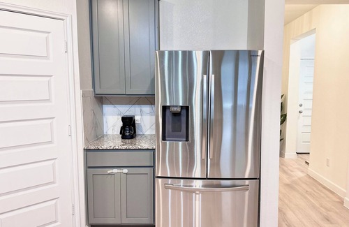 This spacious home comfortably accommodates up to 8 guests with four well-appointed bedrooms, three full bathrooms, and a convenient guest powder room. The interior boasts a clean, modern design with elegant finishes — including a marble dining area perfect for shared meals and special moments. Families traveling with little ones will appreciate the included playpen, making your stay easier and more relaxing. You also have access to a beautiful backyard where you can spend time with your family or group of friends. Whether you're unwinding in the living area or preparing a meal in the fully equipped kitchen, every space is designed to feel like home with a touch of luxury.
