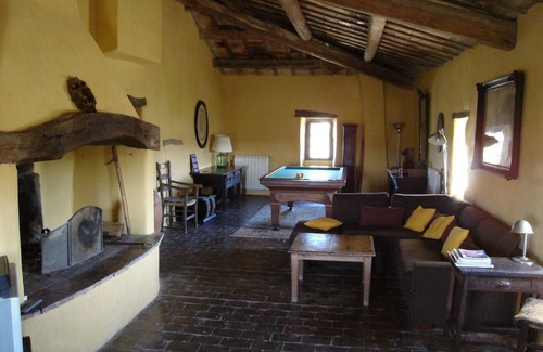 - a large common living room of about 60 m² with French billiard, fireplace, TV and WiFi access.