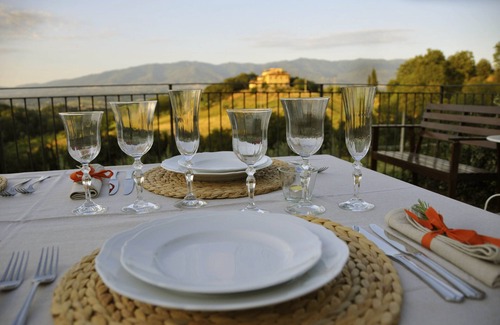 Girasole is one of 5 Beautiful apartments in our farmhouse set on 14 acres of olive grove, each with private shaded verandas perfect for dining "al Fresco"(total property sleeps 16+4) boasts a large infinity pool with its lovely gardens ,positioned so that the wonderful view can be enjoyed in the sunshine from early morning to sunset also a large communal panoramic terrace. Superb private position above the medieval town of Figline Valdarno,