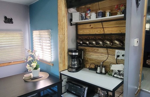 The chicken shack is 1 of 2 vacation rental campers located on Shroom life farm. Guests may enjoy the screened in covered living/dining space in front of the chicken shack with a picnic table and couch area. perfect to lounge and enjoy the sounds of the farm. There are patio lights that come on at dusk plus fun colorful led strips and remote control to dim, change colors or turn off. You will hear crowing in the distance (and they crow randomly all hours of the day and night) plus the sounds of ducks, chickens, quail and local wildlife. Lots of local wildlife and birds also visit property even peacocks! There is not access to the barn or backyard where the animals are but I am happy to arrange time to get them to come over to where you can see them thru the fence and feed them plus answer any questions about farm life. I love talking about the chickens and ducks! Please remember there is no smoking inside the chicken shack however I have an ashtray in the covered area for you to use if you are a smoker. Please do not litter cigarettes in the yard or driveway. They are poisonous to my animals.