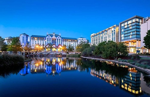 Featuring a 10-acre outdoor pool facility and a European-style spa, this spacious Grapevine resort is less than 6 miles from the Dallas/Fort Worth International Airport. In-room basic high-speed internet is included in the resort fee. The Gaylord Texan offers bright rooms decorated in copper and tan. Each is equipped with cable TV, a coffee maker and a laptop safe box. Guests can choose from 6 restaurants at the Gaylord, including Old Hickory Steakhouse and the Italian fare of Zeppole. The Glass Cactus Nightclub contains 4 bars, live music and a 2-story deck. The Gaylord’s Paradise Springs pool resort features a lazy river, walk-in beach and a poolside bar and grill. A beautiful atrium, jogging trails and a fitness center are also available. The Gaylord Texan is 2.5 miles from downtown Grapevine.